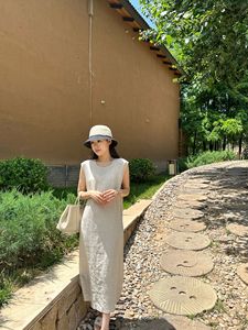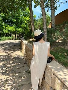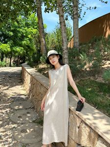 ゆるくてリラックス!気質通勤テンセルリネンベストドレスクールドレープノースリーブコクーン型ノースリーブドレス