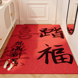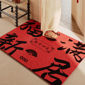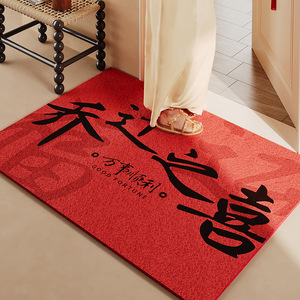 お祝いの玄関ドアマット、玄関ドアカーペット、赤いワイヤーリングフロアマット、新築祝いの滑り止めカーペット