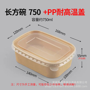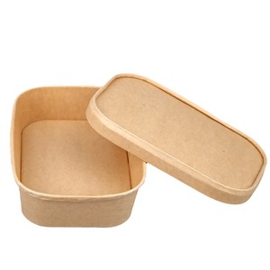 厚手のサラダ用食品グレードの正方形使い捨てテイクアウト用包装箱、牛革紙製弁当箱、ファーストフード用長方形ボウル