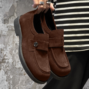 レトロスタイルブラウンローファーメンズスエードスリッポンレイジービーンシューズカジュアルシューズ25537-J