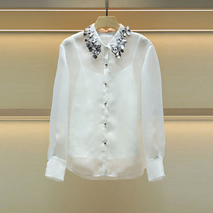 Moshu Weiya 2025 秋の新多用途ラペルスパンコールシングルブレストルーズシャツ 4C02D