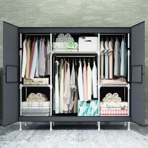 シンプルなワードローブ生地スチールフレーム厚く強化された布製ワードローブシンプルでモダンな経済的な組み立て式ワードローブ収納キャビネット