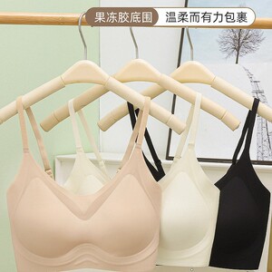 ゼリーストリップソフトサポートシームレス下着薄型プッシュアップたるみ防止スチールリングなし目に見えないバックブラジャー女性のチューブトップ