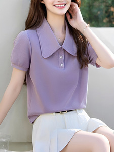 翻领泡泡袖短袖T恤女2025夏上衣显瘦通勤百搭polo领宽松休闲衬衫