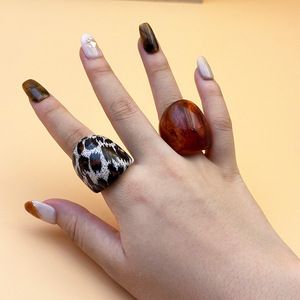ヨーロッパとアメリカのクロスボーダータイガーアイストーンヒョウ柄リング、ファッショナブルで軽くて豪華で高級感のあるリング、女性用のインスタイルのパーソナライズされたハンドアクセサリー