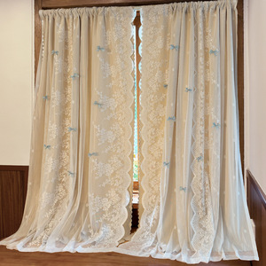 ドーパミンフレンチ遮光カーテン小窓牧歌的なスタイルのレース二重層ガーゼパンチングなし寝室の出窓ドアカーテン