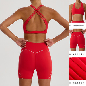 Inweiqi クロスボーダー高弾性起毛ライクラヨガスーツ速乾性フィットネスウェアヌードスポーツランニングスーツ女性用