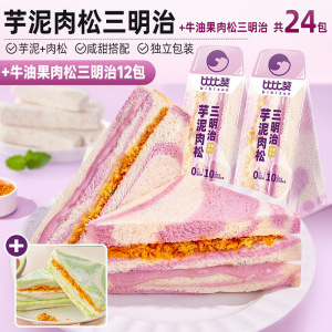 新口味搭配【共24包】芋泥肉松三明治12包+牛油果肉松
