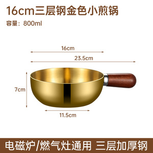 【バージョンアップ版】316 小型フライパン 16cm 三層鋼 ゴールド 蓋なし