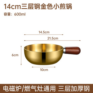 【バージョンアップ版】316 小型フライパン 14cm 三層鋼 ゴールド 蓋なし