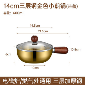 316 小型フライパン-14cm 三層鋼 ゴールド 蓋付