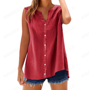 欧美跨境亚马逊夏季圆领无袖开衫背心女装外贸
