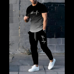 2025 春と秋のクロスボーダーメンズラウンドネックデジタル 3D プリント半袖ズボンカジュアルスーツヨーロッパサイズ卸売