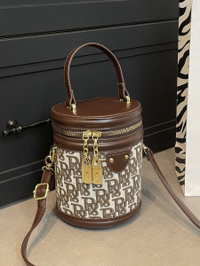 外贸2025跨境新款包包女时尚印花手提斜挎高级韩款字母简约水桶包