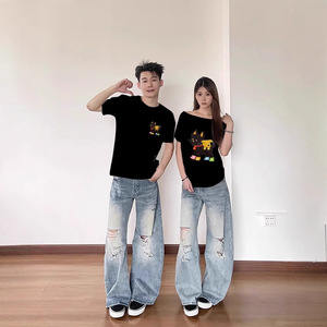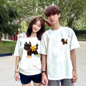 夏季纯棉短袖T恤情侣装慵懒宽松小众设计感男女上衣学生潮牌班服