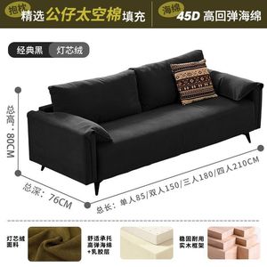 黑色沙发小户型客厅现代简约公寓卧室出租房复古油蜡皮艺双人沙发
