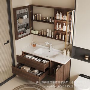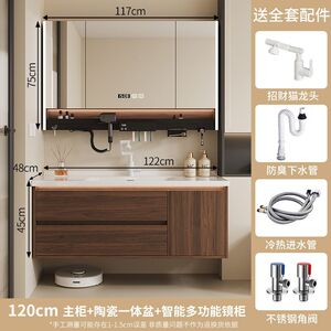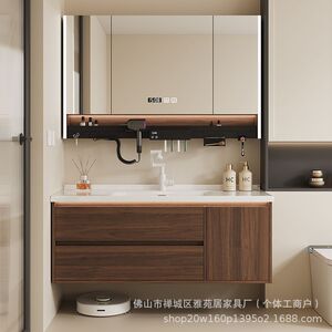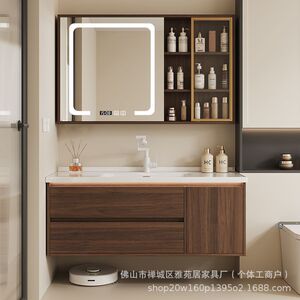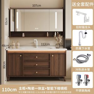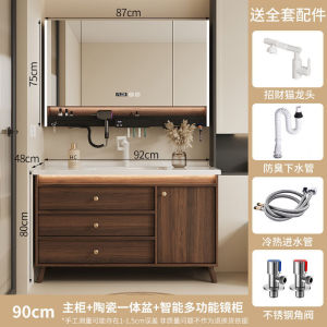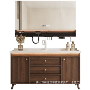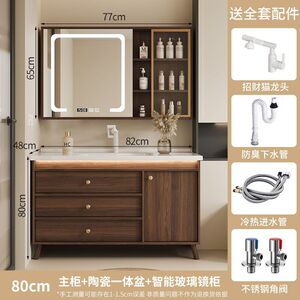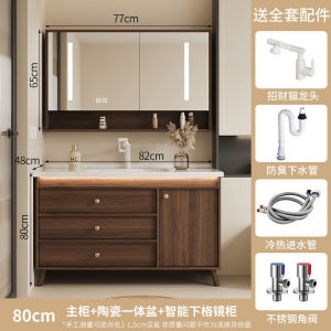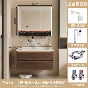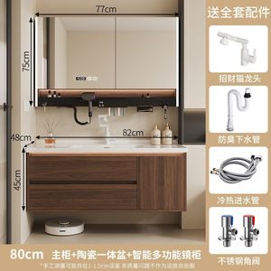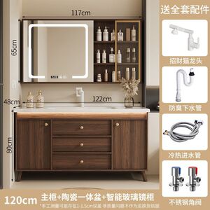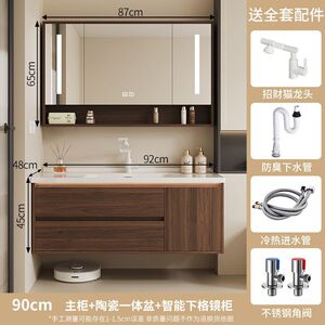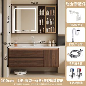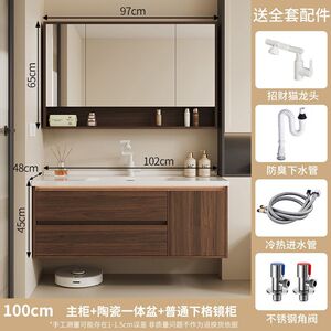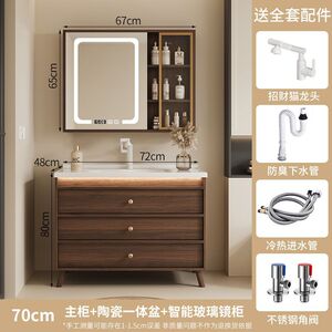 新中式胡桃木洗手盆浴室柜组合卫生间洗手洗漱陶瓷一体洗脸盆洗脸