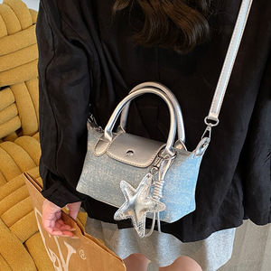 2025年新作 シンプルでおしゃれなデニム生地のコントラストカラー ショルダーバッグ/斜め掛けバッグ 小型 クロスボーダー向け 女性用餃子バッグ