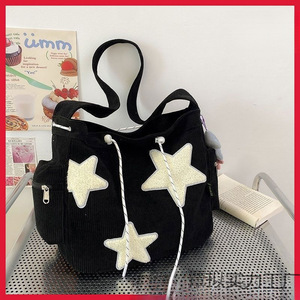 新款包包可爱设计感星星女学生大容量通勤托灯芯绒单肩斜挎包便携