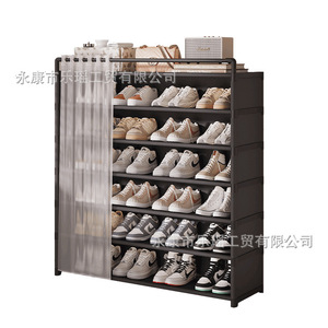 シンプルなシューズラック、玄関ドア、家庭用屋内、見栄えの良い多層シューズキャビネット、ドア付き、防塵、寮、小型、スペースをとらない