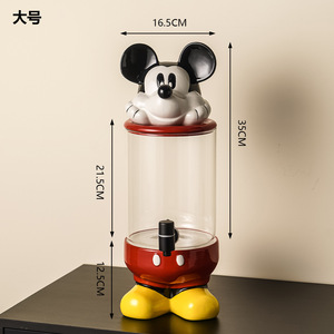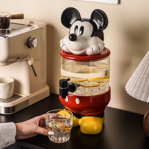 クリエイティブミッキージュース缶飲料バケツ蛇口付き冷水バケツ高価値大容量ガラス冷水バケツ容器