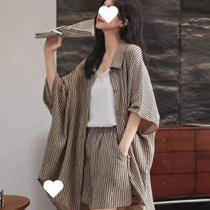 ファットシスタークラウドコットン薄手パジャマ女性用2025半袖ショーツレイジースタイル100kgゆったりと着用できるスーツ