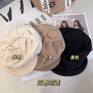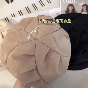 黑色英伦八角帽复古女春夏鸭舌百搭深顶宽檐显脸小贝雷帽画家帽子