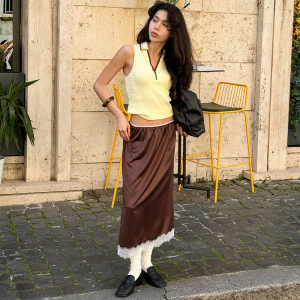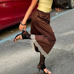 夏の新作レースAラインストレートスカートデザイン、ファッショナブルでカジュアルなロングスカート2025クロスボーダー通勤