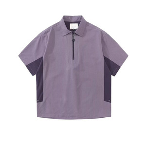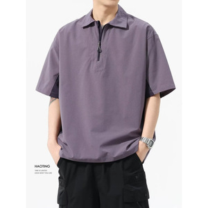 ゆったりと多用途の速乾性クールポロシャツメンズ夏ステッチコントラストカラージッパーネック通気性アウトドア半袖Tシャツ