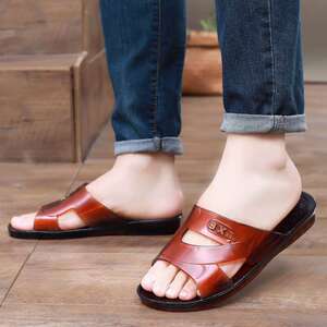 牛腱黄色ゴムスリッパ浴室入浴メンズサンダル足臭くないプラスチック生ゴムホーム牛腱底クリスタルスリッパ男性用