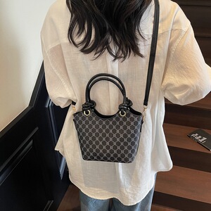卸売フレンチライト高級チェック柄ポータブルバケットバッグレディースバッグ2025夏の新しいスタイルのショルダーバッグ通勤クロスボディバッグ