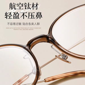超軽量純チタンブラウンフレーム女性用高度近視メガネは、度付きの小さなフレームを装備でき、日本製の美白アイフレームです。