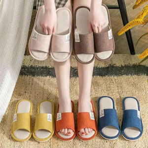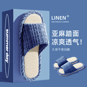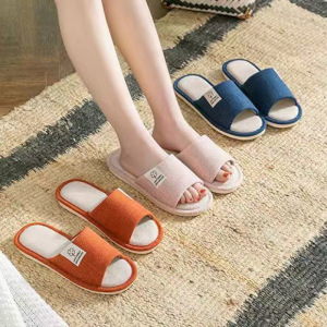 女性用スリッパ春と秋リネン屋内綿とリネンホーム家庭用四季カップルファブリックフロアモップメンズ夏滑り止め
