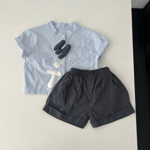 男の子の夏の子供のゆったりハンサムシャツショーツスーツ幼児と幼児のお出かけツーピーストレンド0006A036