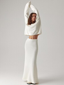 秋冬の女性用クロスボーダーイミテーションミンクセーターセットヨーロッパとアメリカの通勤シンプルニットVネックセーター+スカートセット
