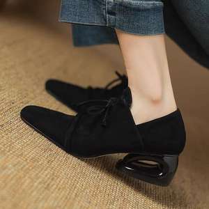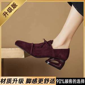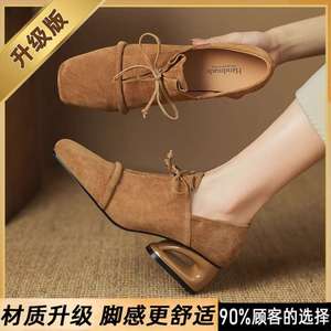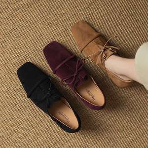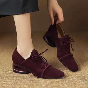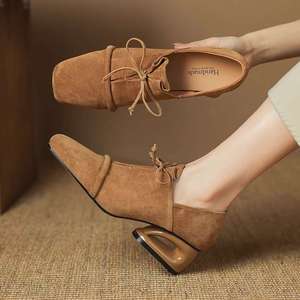 レトロつや消しリボン厚底靴女性のための春と秋の新しい快適で多用途なスクエアトゥディープローファー小さな革靴