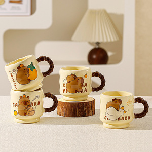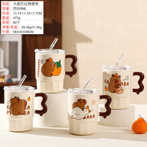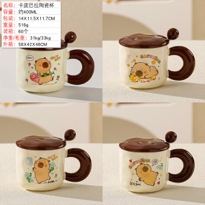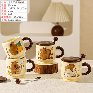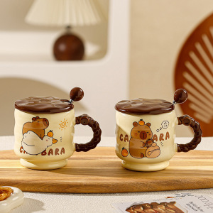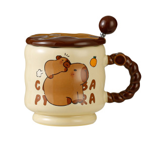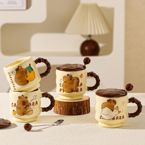 新しいトレンディなかわいいカピバラ人形ウォーターカップ高価値マグ蓋付きスプーンセラミックカップギフト