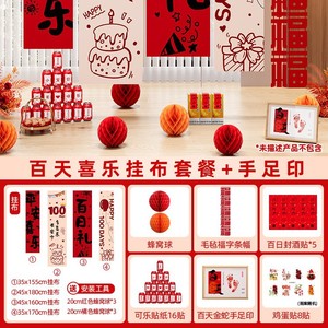 百日喜び吊り布パッケージ + 百日手形と足形 + 百日愛バルーン + 100 個の金色の数字バルーン