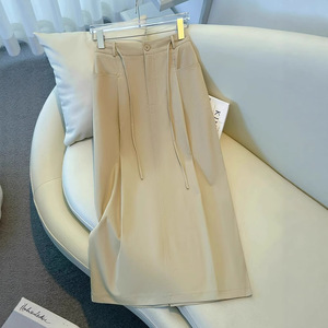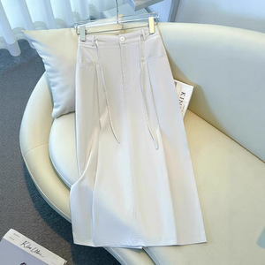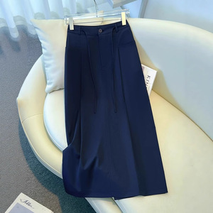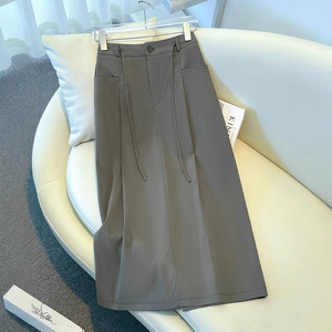 ハイウエストスカートレディース夏薄手2025新作スリムで美しいカジュアルミドル丈スカートストレートAラインヒップスカート