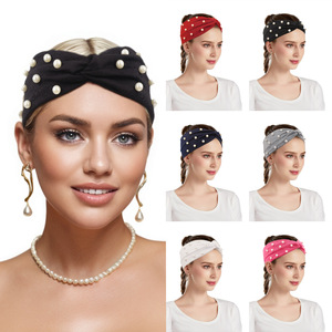 クロスボーダーヨーロッパとアメリカのヘアアクセサリー新しいパールヘアバンド弾性クロスワイドエッジソリッドカラーファッションヘッドバンドアマゾンヘアバンド