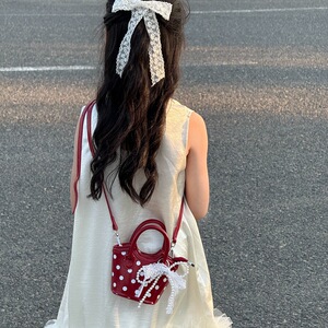 新しい韓国スタイルの水玉模様のリボンミニ子供用ポータブルクロスボディ親子アクセサリー小さなバッグ女性の卸売