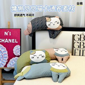 新款慵懒觉觉猫超可爱全棉卡通荞麦枕头学生宿舍休闲沙发靠枕枕芯