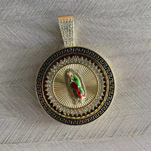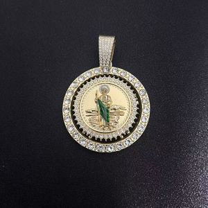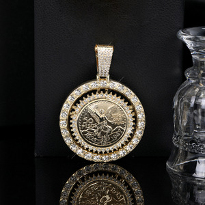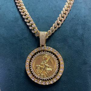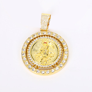 クロスボーダー新製品フルダイヤモンドペンダントネックレスメンズヒップホップスタイル回転ペンダントネックレス合金宗教回転キューバチェーン