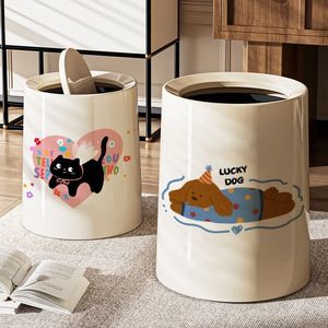 リビングルームホームモダンレトロスタイル新しいダブルバレルゴミ箱蓋付き高価値トイレ寝室キッチンバスルーム