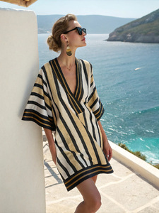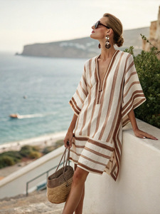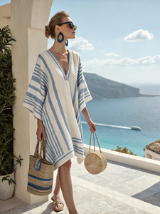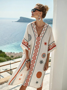 新しいアマゾンレディーススーパーフェアリーVネックドレス海辺休暇ビーチスカートプリントルーズミドル丈スカート