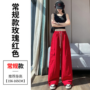 ラシャペルアメリカンローズレッドアイスシルク速乾オーバーオールレディース夏薄手ハイウエスト登山ワイドレッグパラシュートパンツ