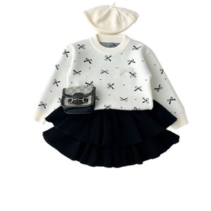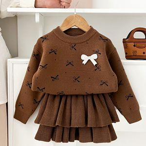 女童针织毛衣套裙2025秋冬新款女童圆领蝴蝶结套头衫蛋糕裙两件套