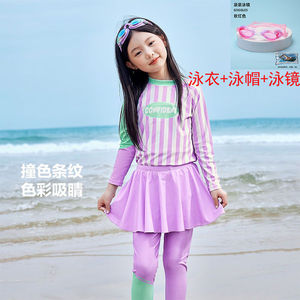 6-8歳の女の子の新しいinsスタイルのスポーツ水着プロの温泉休暇速乾性外国風女の子水着日焼け止め