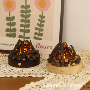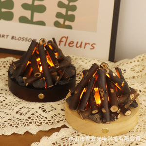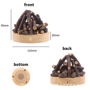 充電式タッチブランチラウンドキャンプファイヤーナイトライトクルミ色の高品質無垢材雰囲気ライトデスクトップ装飾品ホワイトノイズ付き