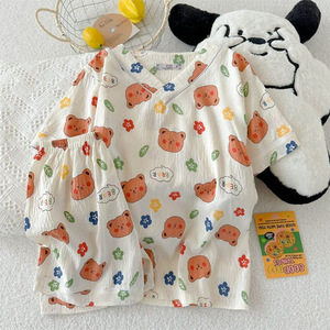 V ネック半袖ショーツパジャマ女性の夏のクラウドコットンかわいい KT 猫スーツカジュアル漫画ホーム服は屋外で着用できます